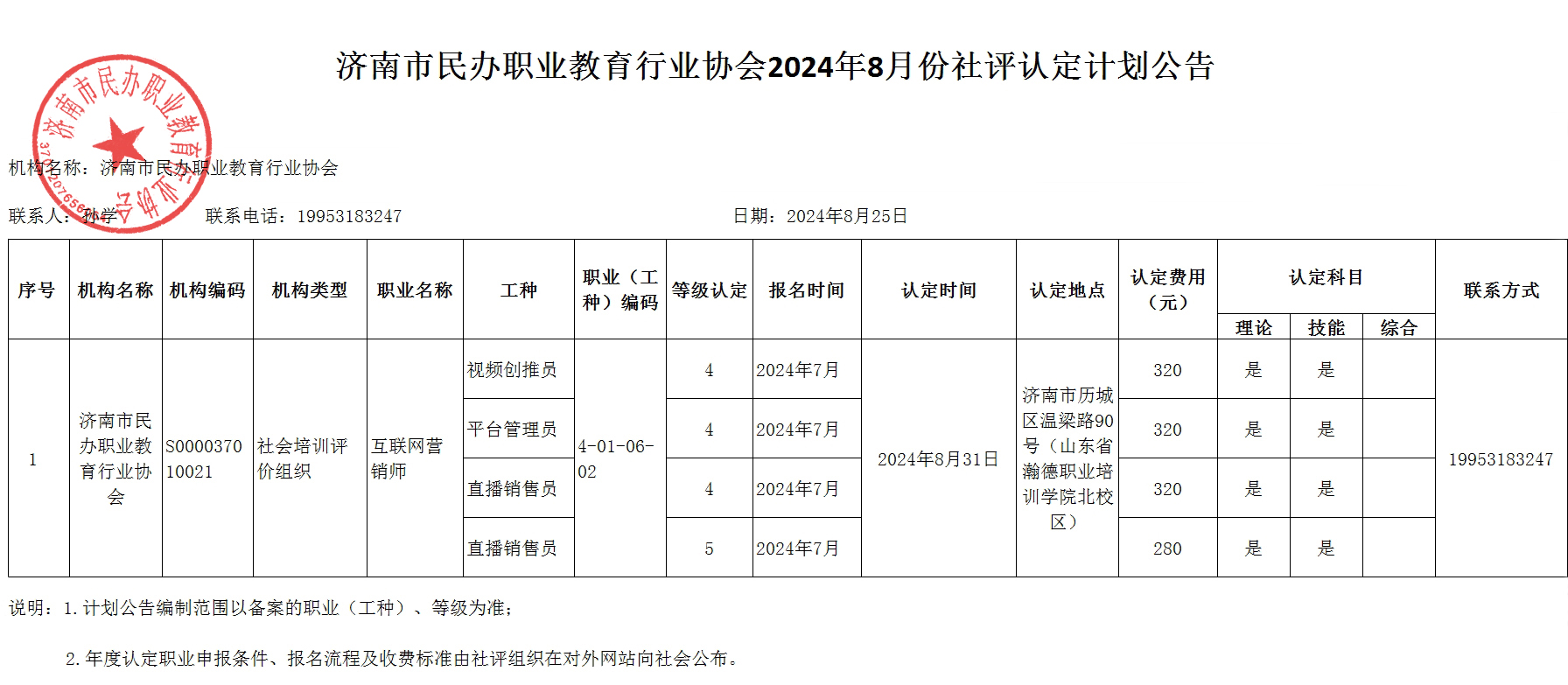 济南市民办职业教育行业协会2024年8月份社评认定计划公告