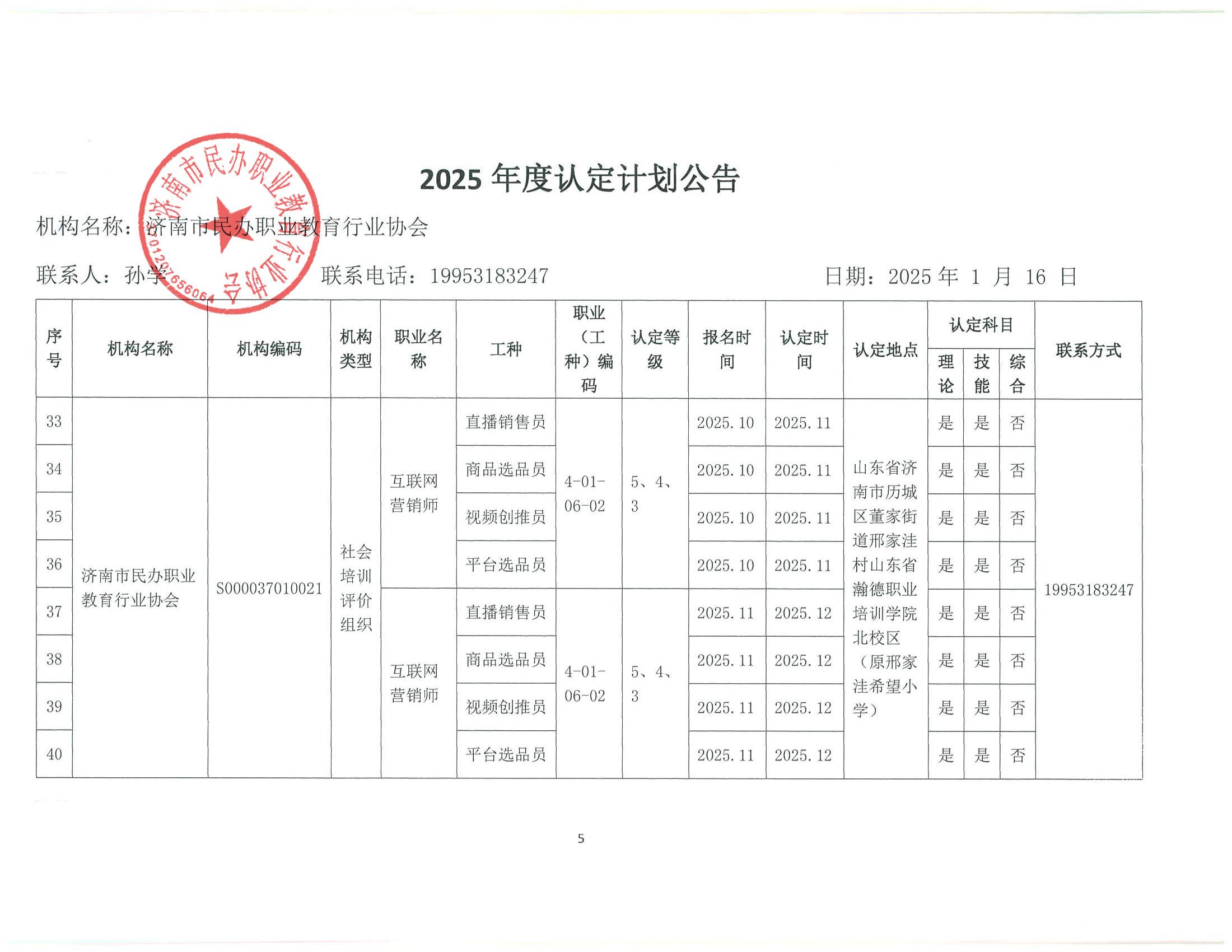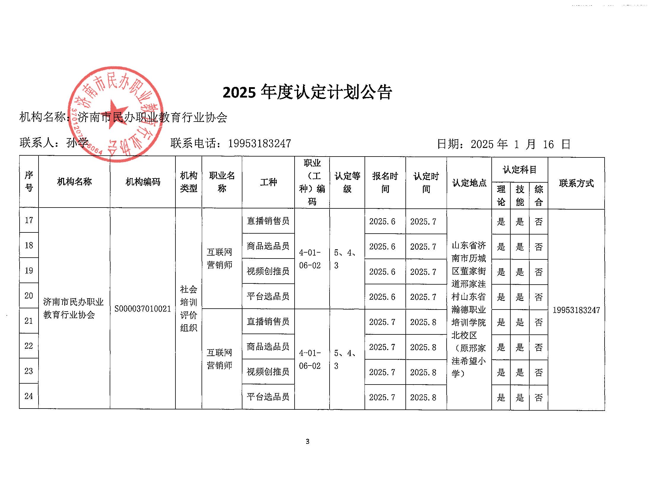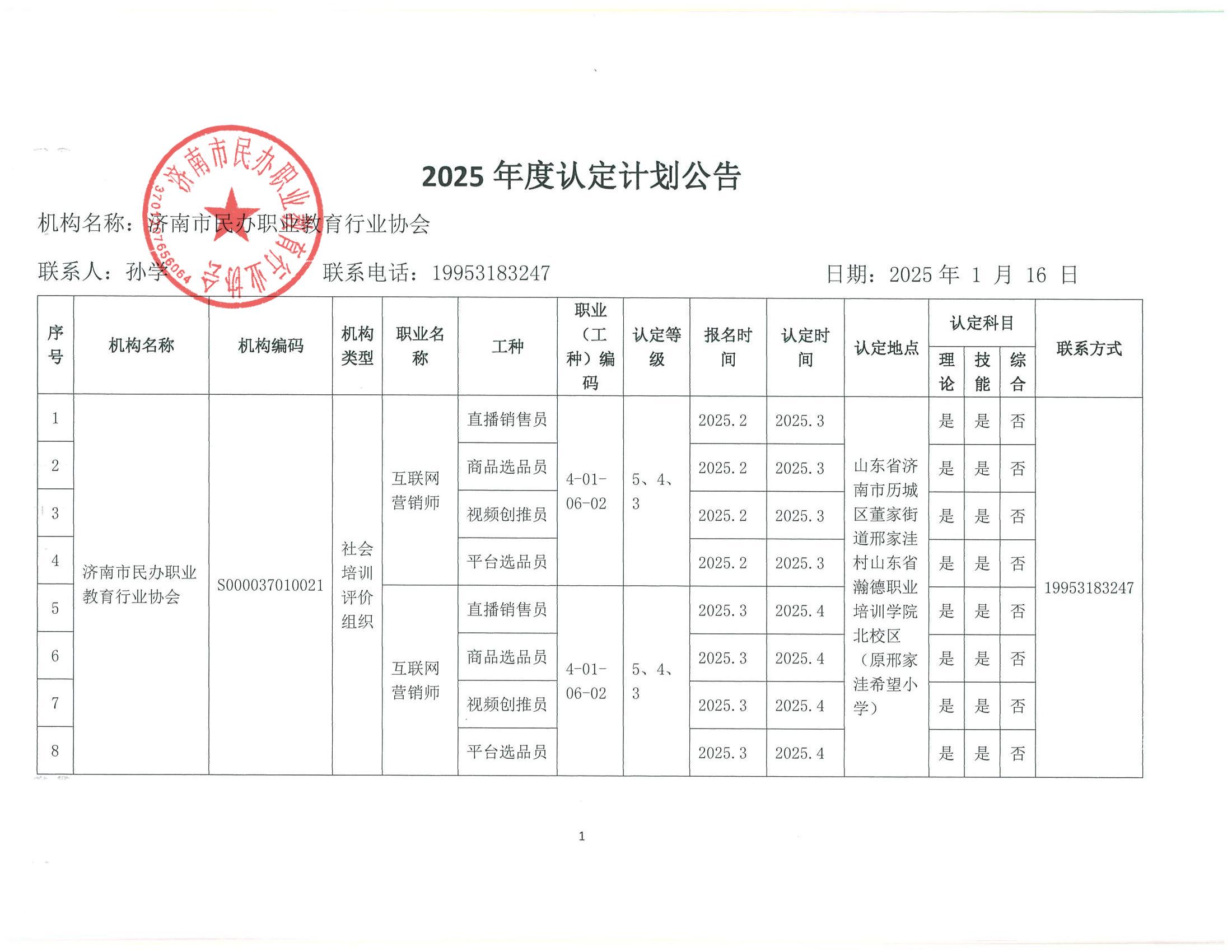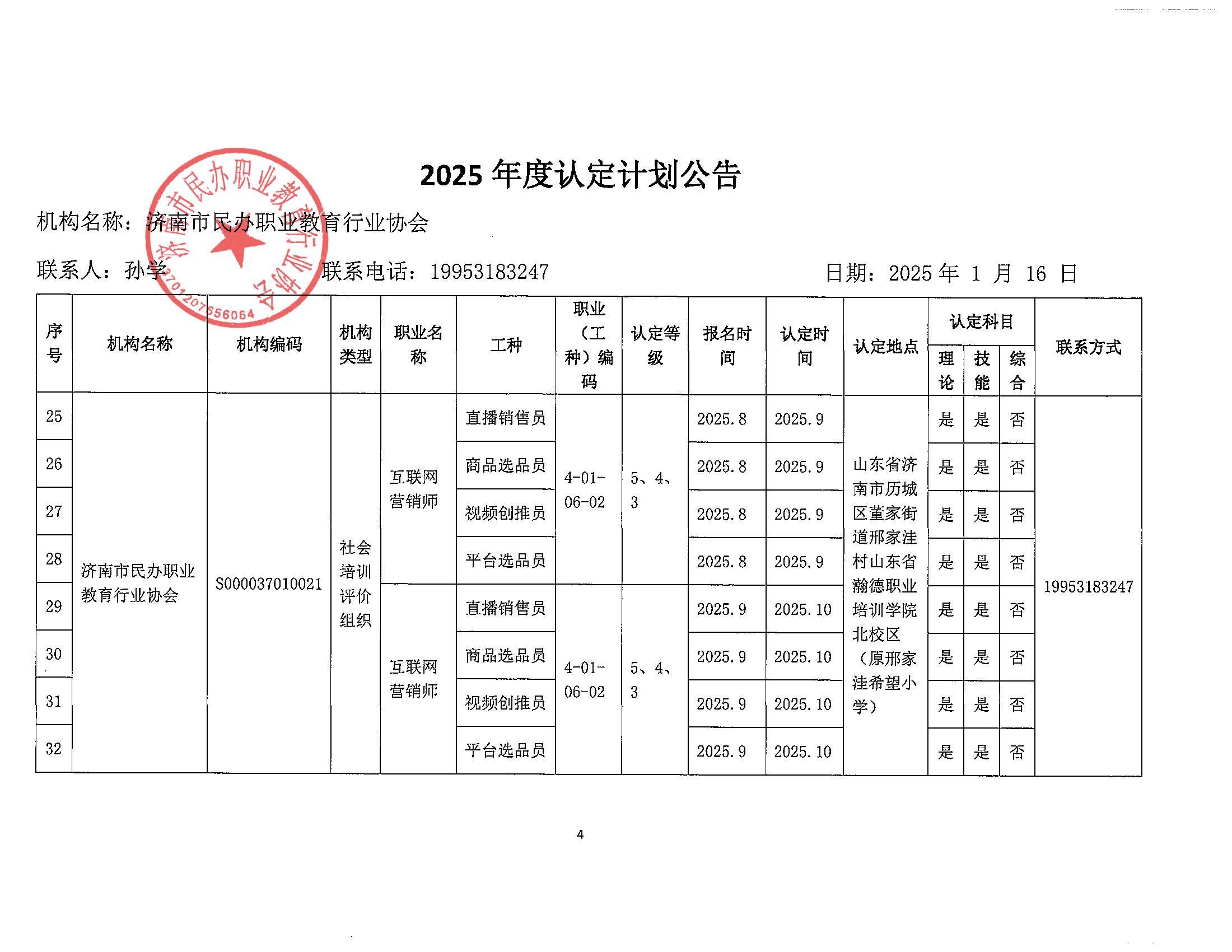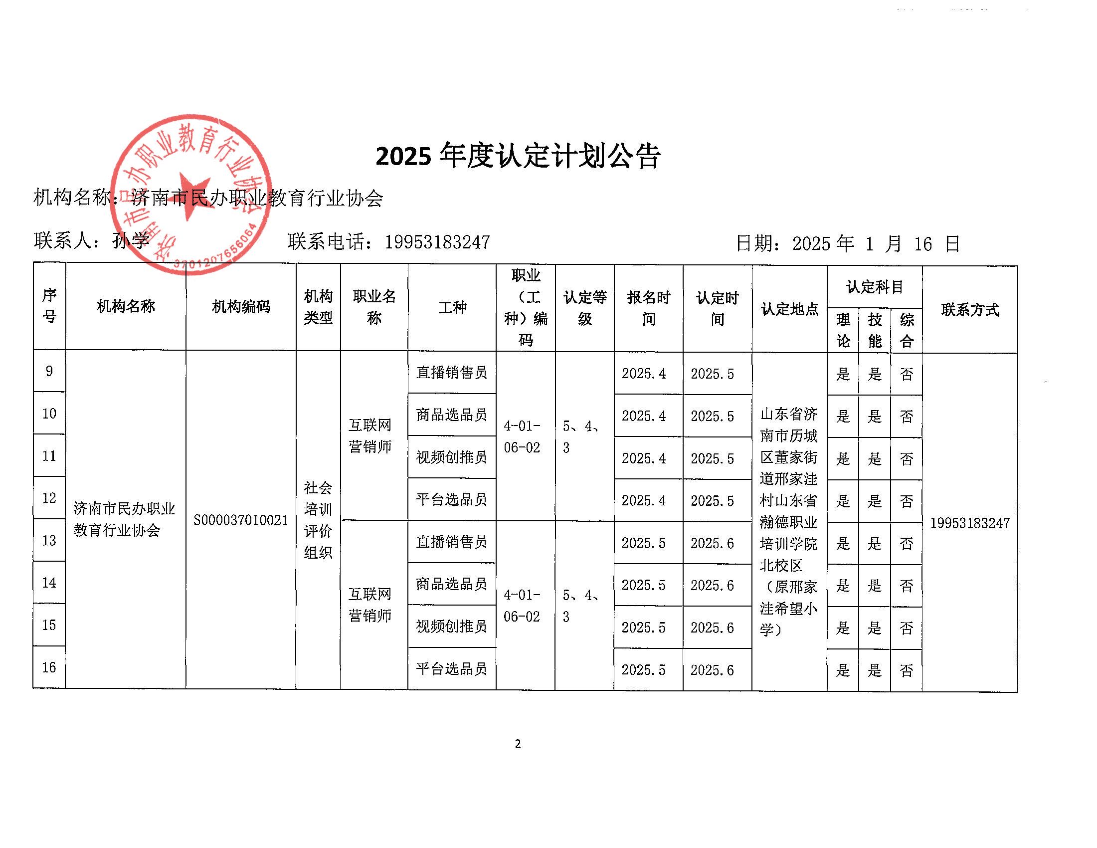 2025年济南市社会培训评价组织职业技能等级认定计划(济南市民办职业教育行业协会)